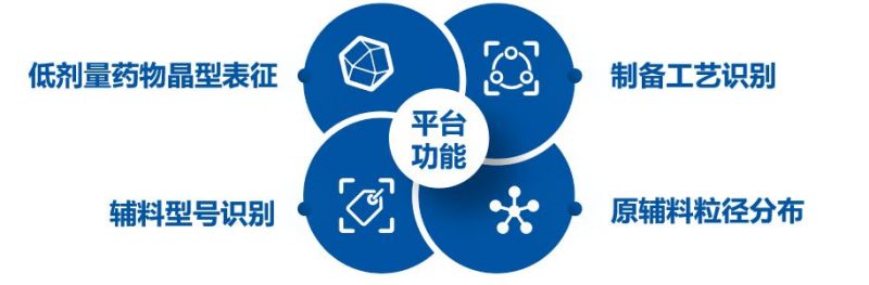 ●對(duì)制劑原料藥的理化性質(zhì)、粒徑、晶型、晶癖、粒度分布、輔料含量、制備工藝等進(jìn)行研究,具備低劑量藥物晶型表征、輔料型號(hào)識(shí)別、原輔料粒徑分布、制劑工藝識(shí)別等功能。 |